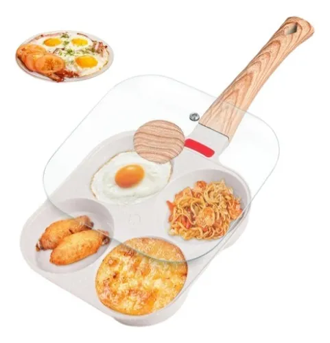 - Sartén para huevos de 4 tazas: compacta y eficiente. Esta sartén para huevos de 4 tazas es una sartén pequeña y confiable, perfecta para cocinar un solo huevo. También sirve para freír varios huevos a la vez, ideal para desayunos familiares.