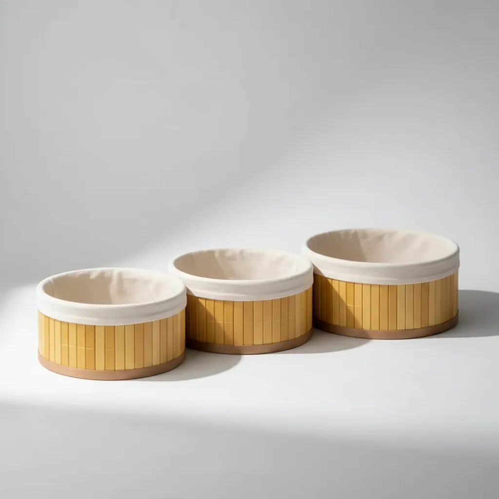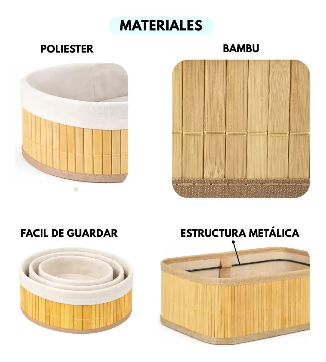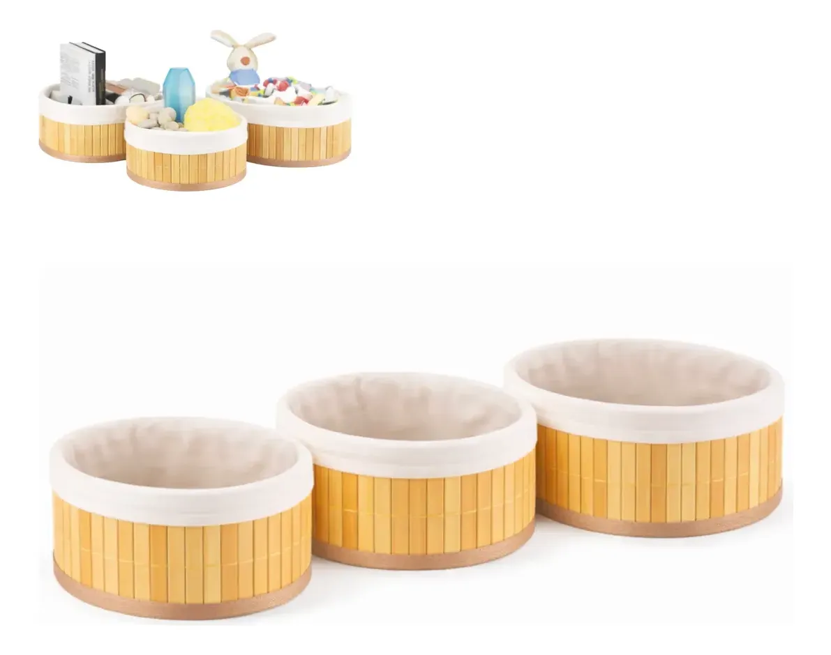 Set 3 Organizador Bambu Baño Canastos Cocina Cestas Redondo Suono HOG0704