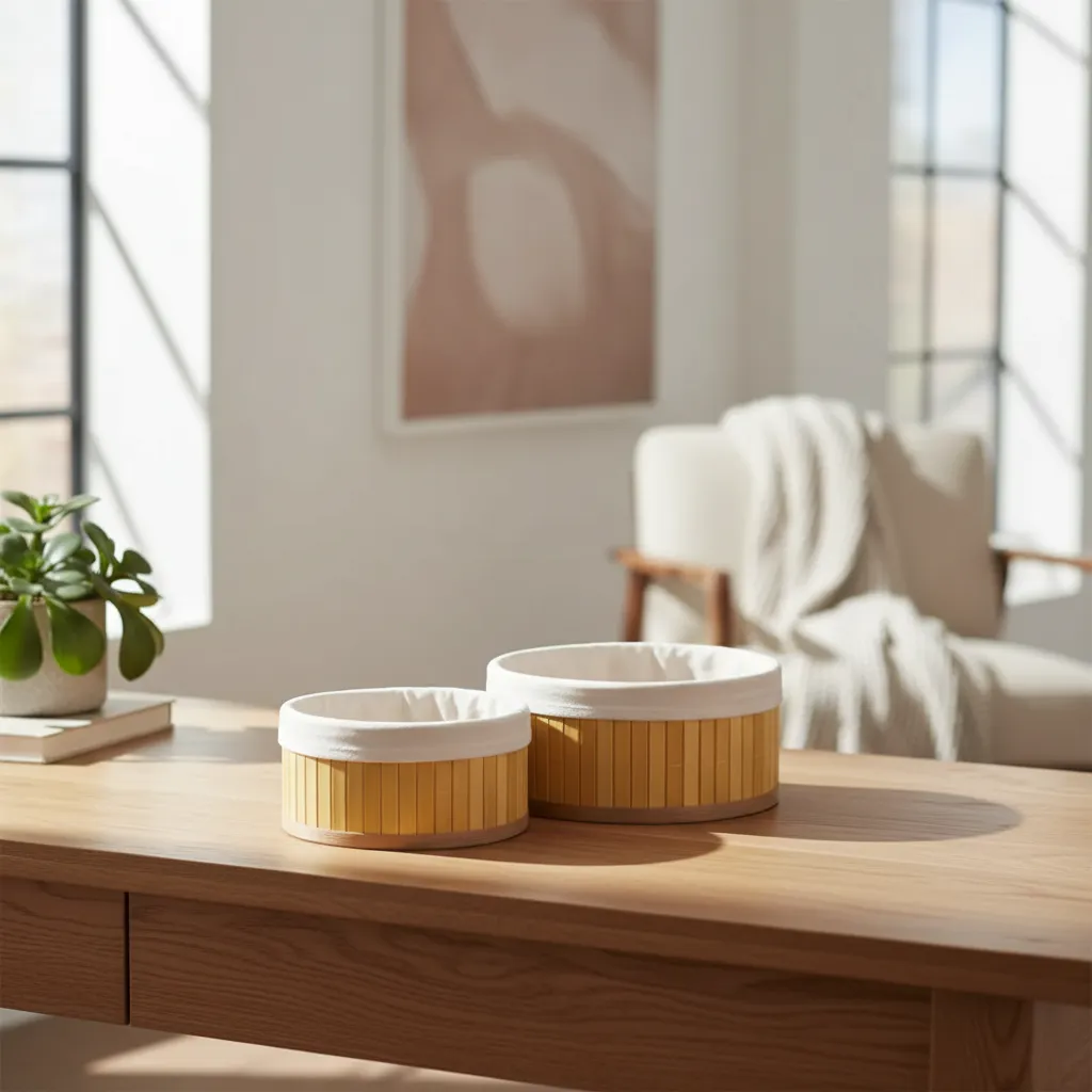 Fabricados en bambú, estos organizadores no solo son resistentes, sino que también aportan un toque natural y cálido a cualquier ambiente. Su diseño sin tapa y sin manijas permite un acceso fácil y rápido a su contenido, facilitando la organización diaria. Además, su estética minimalista se integra armoniosamente con diferentes estilos de decoración. El Set 3 Organizador Bambú es la opción perfecta para quienes buscan funcionalidad sin sacrificar el estilo. Ideal para quienes valoran la sostenibilidad y el diseño, estos canastos son una adición práctica y atractiva a tu hogar. Mejora tu experiencia de organización y transforma tus espacios con este set versátil y elegante.