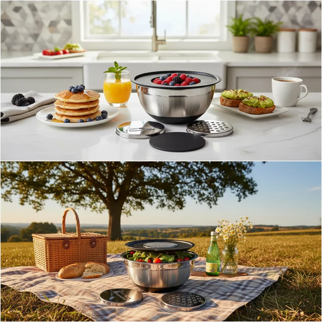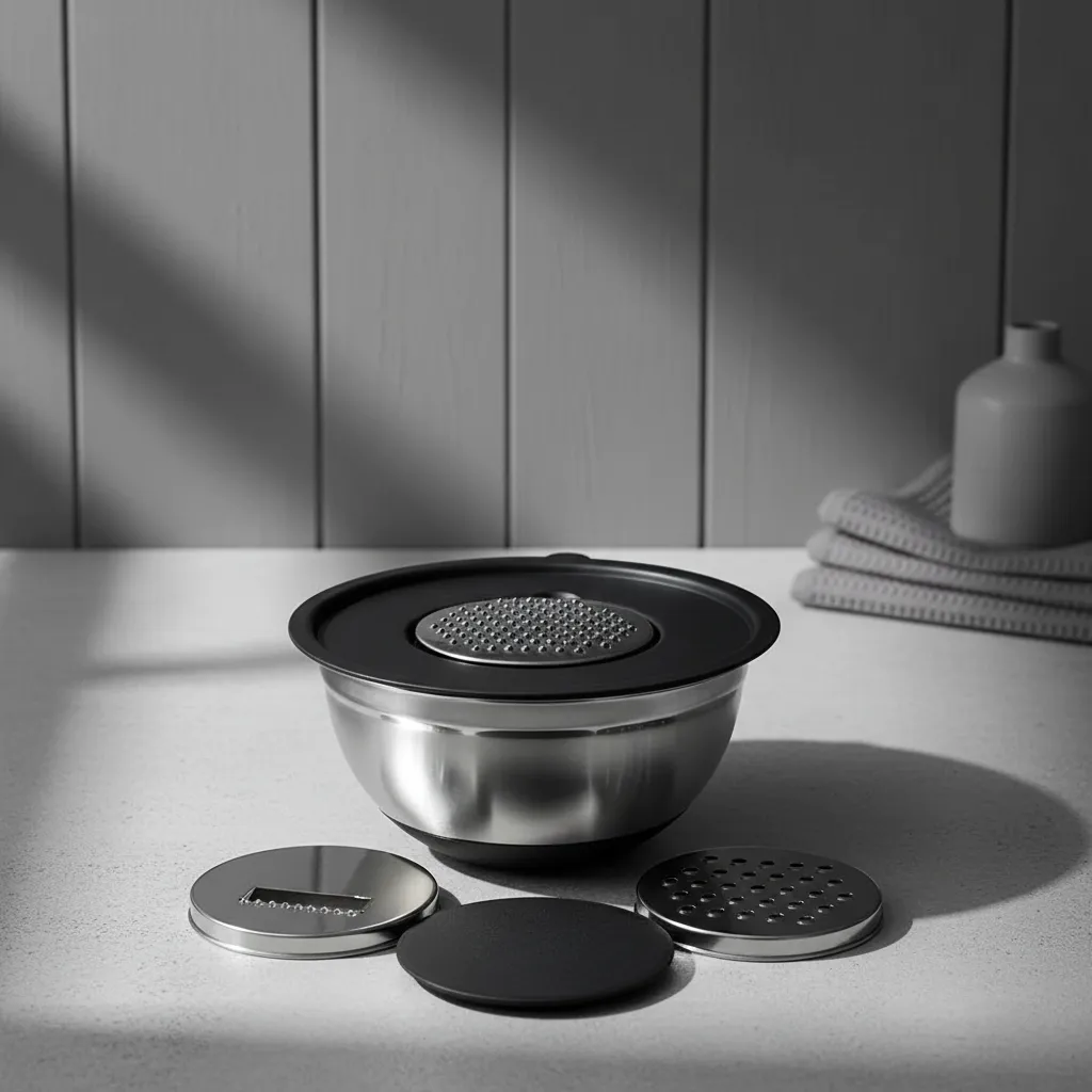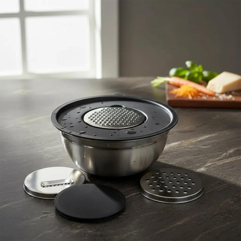 Set Bowl Batidor + 3 Ralladores Acero Con Tapa Cool Bazar CL1010