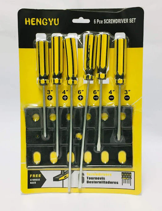 Set completo de 6 destornilladores HENGYU, ideal para trabajos de hogar, taller o uso profesional. Incluye puntas Phillips (+) y planas (-) en distintos tamaños para adaptarse a todo tipo de tornillos.