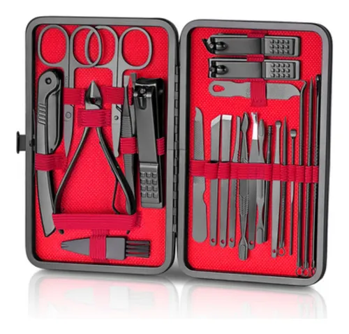 Incluye una variedad de herramientas esenciales, como alicates, tijeras, limas, cortauñas, empujadores de cutículas, cortacutículas y pulidores de uñas, todas fabricadas con materiales de alta durabilidad. Estas herramientas ofrecen un rendimiento óptimo para el cuidado y mantenimiento de las uñas, facilitando cortes precisos, pulidos perfectos y tratamientos detallados de cutículas. Su diseño ergonómico asegura comodidad en cada uso, haciendo que el proceso de manicura y pedicura sea sencillo y efectivo, ya sea para uso personal o profesional.