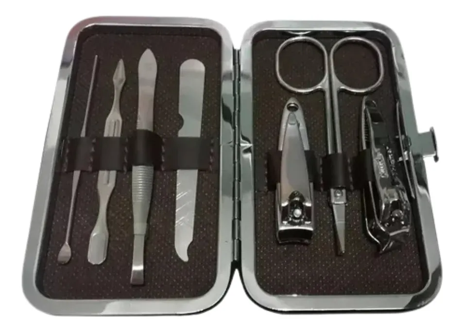 Set Manicuria Pedicuria Mini Estuche 7 Piezas Corta Uñas Tijera