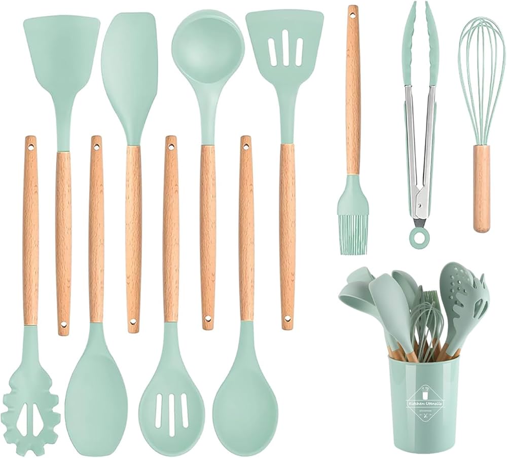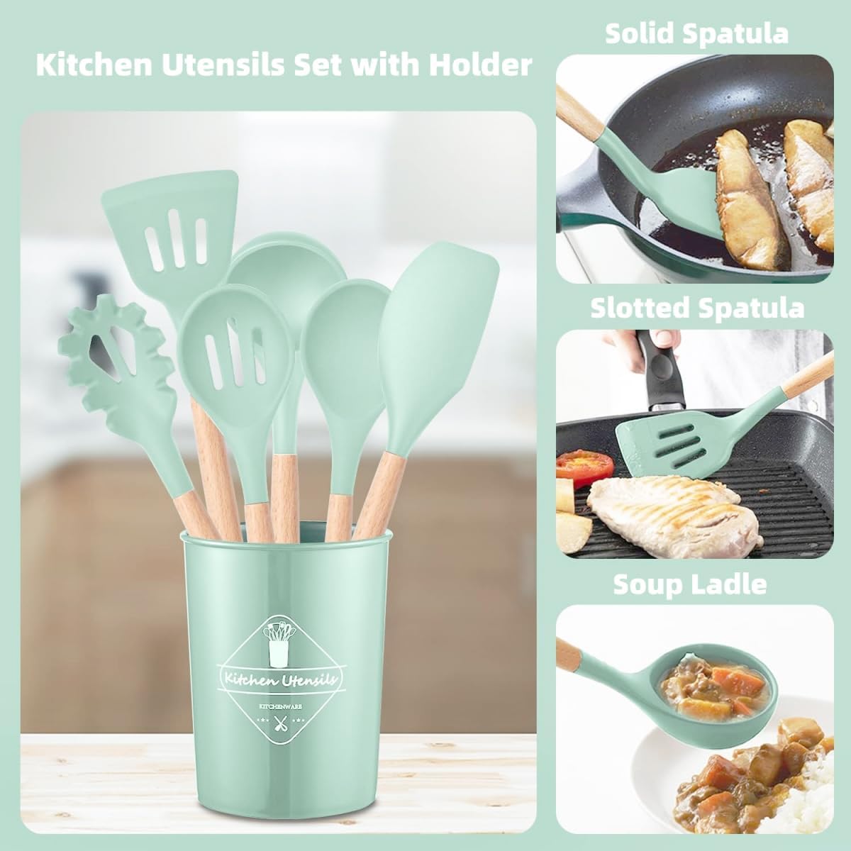 Set Utensilios de cocina de silicona con soporte 12 piezas