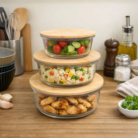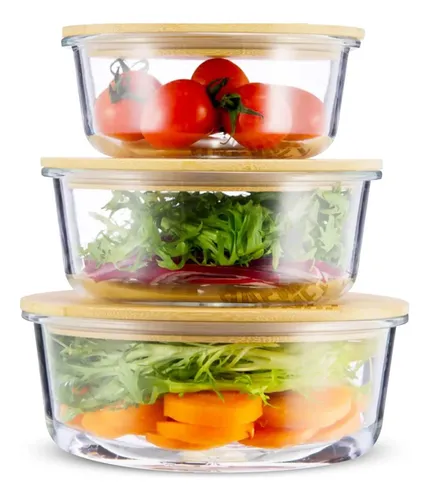 Set X3 Bowl Contenedor Hermeticos De Vidrio Js-7161 OSR