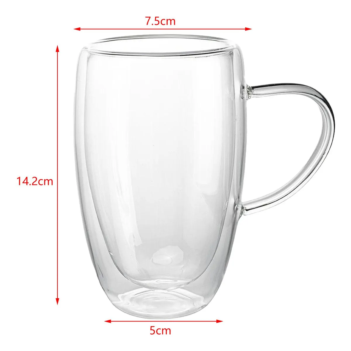 Taza De Café De Vidrio De Doble Pared Con Asa 450ml TH-129