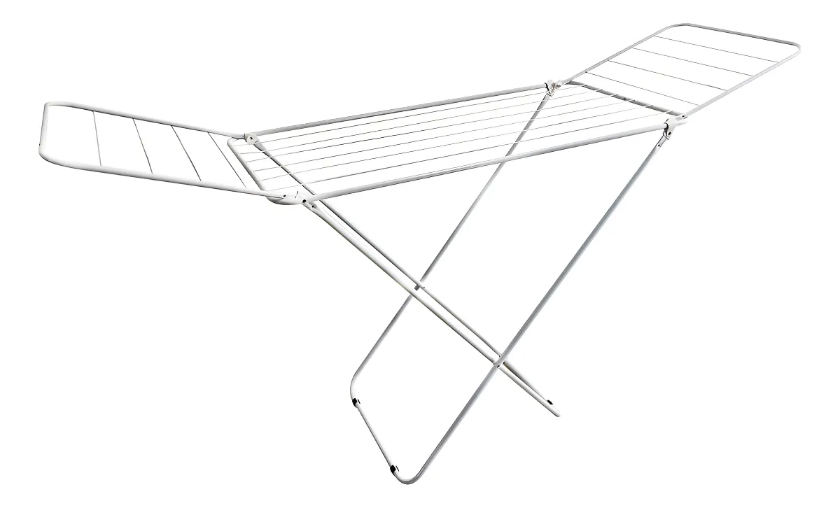Elegante y práctico tender plegable de pie con alas, ideal para secar ropa de forma cómoda y aprovechar al máximo el espacio en tu hogar.