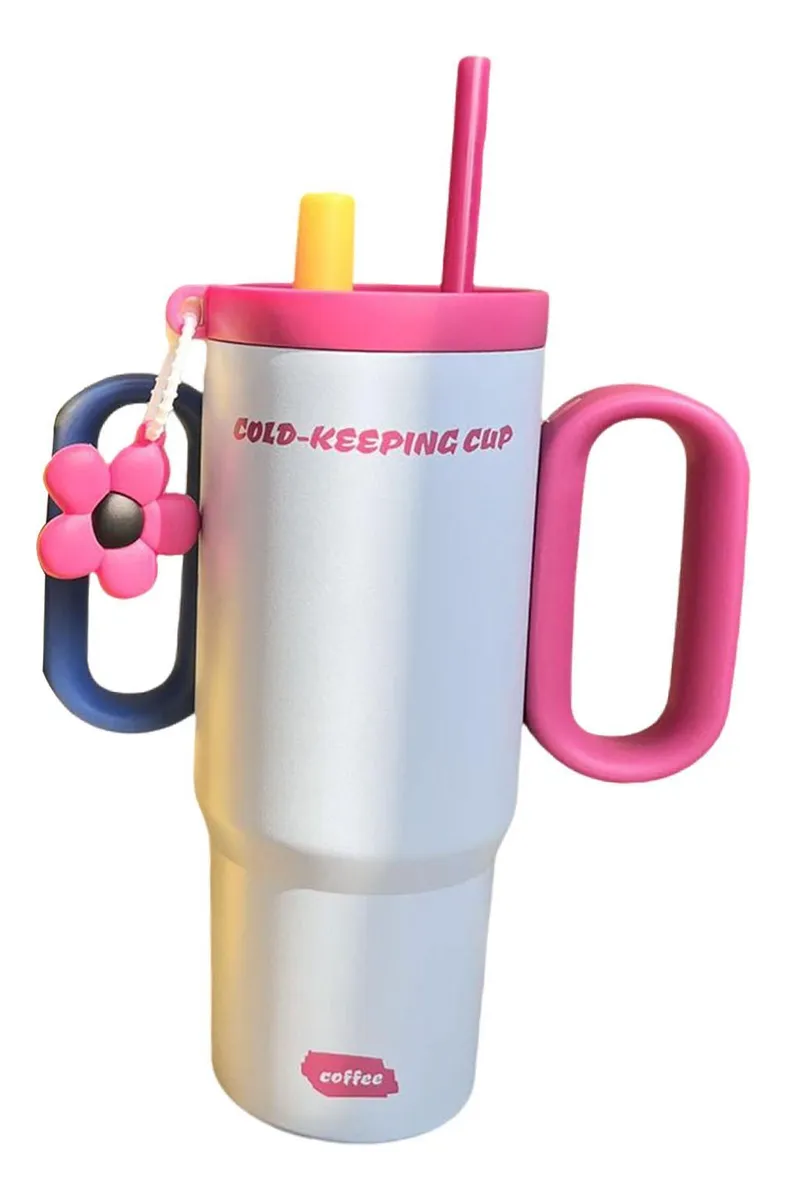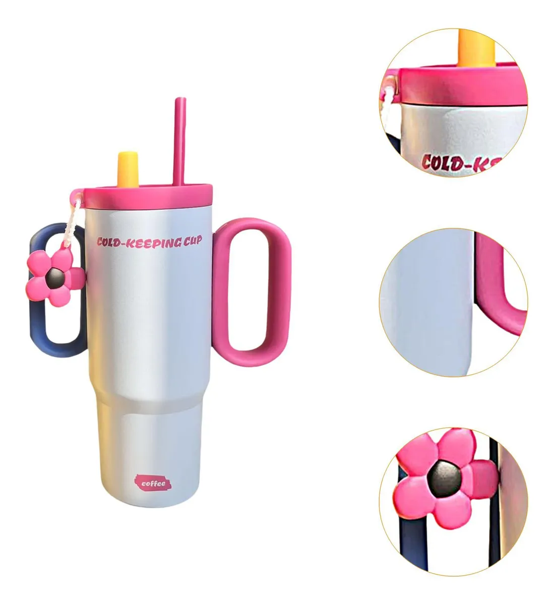 Vaso de acero inoxidable con aislamiento, de reutilizable con colgante y pajitas, botella de agua para fiestas al libre, para mujeres Descripción: Material de calidad: Hecho de acero inoxidable resistente y de calidad que resiste el desgaste, no se deforma fácilmente y el vaso aislado es fácil de limpiar para un uso prolongado. Aislamiento eficiente: La taza de agua mantiene las bebidas calientes o frías durante horas, ideal para café, té, agua, jugo y más, ideal para actividades al aire libre y bebida diaria. Gran capacidad: El diseño espacioso de la taza de viaje reduce la necesidad de recargas constantes mientras cuenta con una tapa, pajita y asa ergonómica para un uso y transporte convenientes. Diseño compacto y elegante: La botella de agua mide 9,5 cm x 23,8 cm/3,74 pulgadas x 9,37 pulgadas, ligera pero resistente con un accesorio de encanto decorativo, fácil de transportar sin ocupar mucho espacio. Uso versátil: el termo es ideal para el hogar, la oficina, los viajes, los entrenamientos, el gimnasio o como un regalo considerado para parejas y amigos que aman los accesorios prácticos.