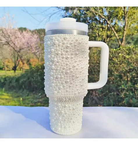 Este vaso térmico de 1200ml combina estilo, capacidad y un diseño único lleno de textura y brillo. Su exterior está cubierto de aplicaciones 3D tipo perlas que generan un efecto visual impactante y súper glam, perfecto para quienes aman los accesorios que destacan.