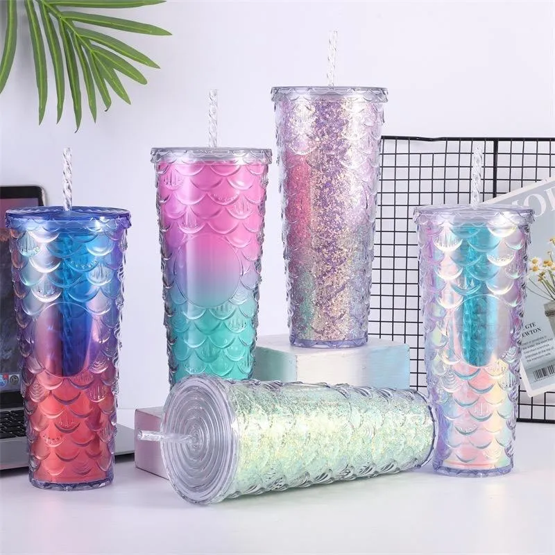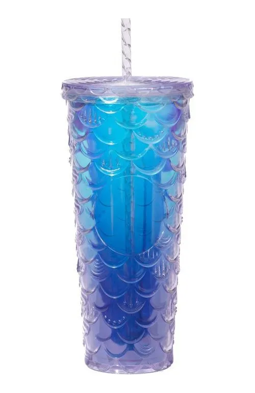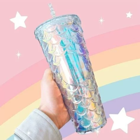 Vaso Tumbler Sirenita Tornasol Acrílico Brillante C/sorbete WF-19