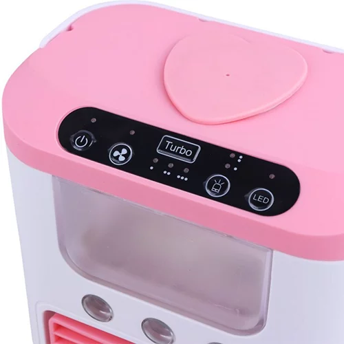 Si busca un enfriador de agua de escritorio pequeño, portátil, recargable y silencioso para su escritorio, dormitorio o incluso para viajar, el enfriador de agua recargable de escritorio K918 con luz nocturna es una excelente opción. Este dispositivo combina un potente ventilador, un rociador, un gran tanque de agua, una luz LED de colores y una batería recargable integrada que enfría, humidifica y hace que el aire de la habitación sea agradable. Simplemente vierta un poco de agua en el tanque y enciéndalo. El sistema iniciará automáticamente el proceso de evaporación del agua, que enfría el aire al instante al entrar en contacto con el aire caliente, además de retener las impurezas. Es fácil de transportar y perfecto para usar en su escritorio de oficina, en la mesita de noche de su dormitorio o incluso en la encimera de su cocina. Es fácil de usar: simplemente conéctelo a un puerto USB. Este dispositivo tiene 3 niveles de ventilación, para que pueda elegir la temperatura ideal para cada momento del día. Moderno y elegante, cuenta con luces personalizadas en un lateral y se conecta a una entrada USB