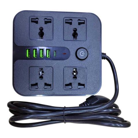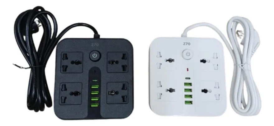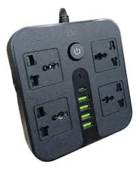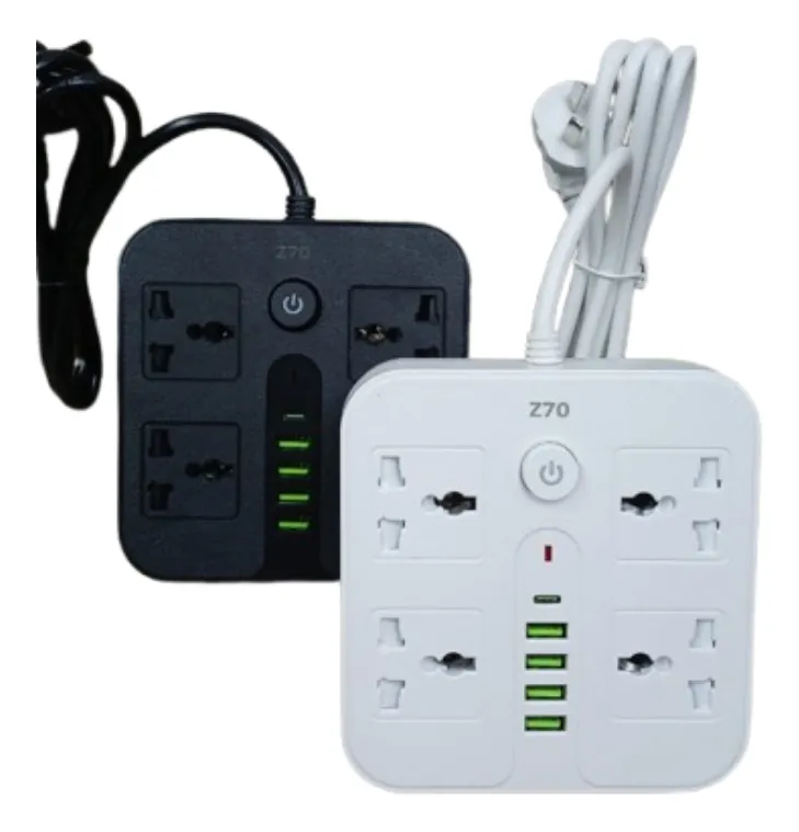 Zapatilla Universal 240v 4 Enchufes + 4 Usb + 1 Puerto C Negro Z70